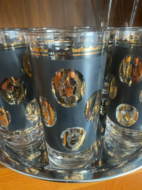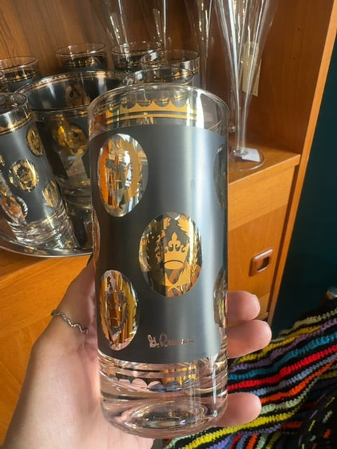 Vintage, Mcm set G.Reeves glass tumblers & ice bucket
