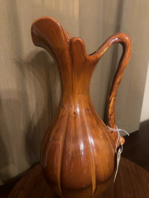 Vintage,Mcm Royal Heager drip glaze tall vase/ urn with handle in unique Carmel color