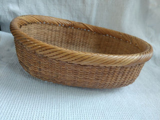 Vntg. Small Oval Nantucket Woven Basket with solid wood bottom