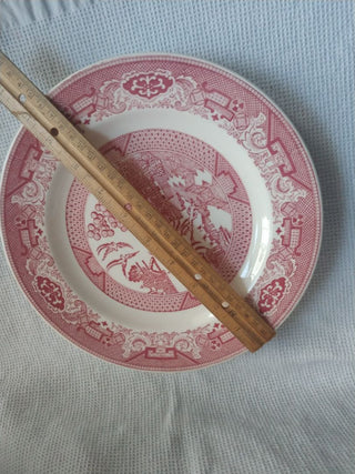 Set of 3 Willow Ware China Plates Red Transfer Ware 10"