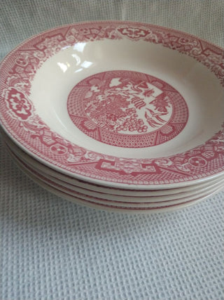 Set of 5 Soup Bowls Red Transfer Ware Willow Ware China /Firm