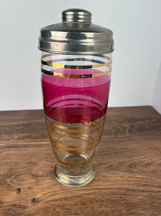 Vintage Cranberry Glass & Gold Striped Cocktail Shaker