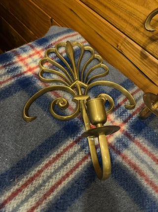 Brass fan candle sconce set 2