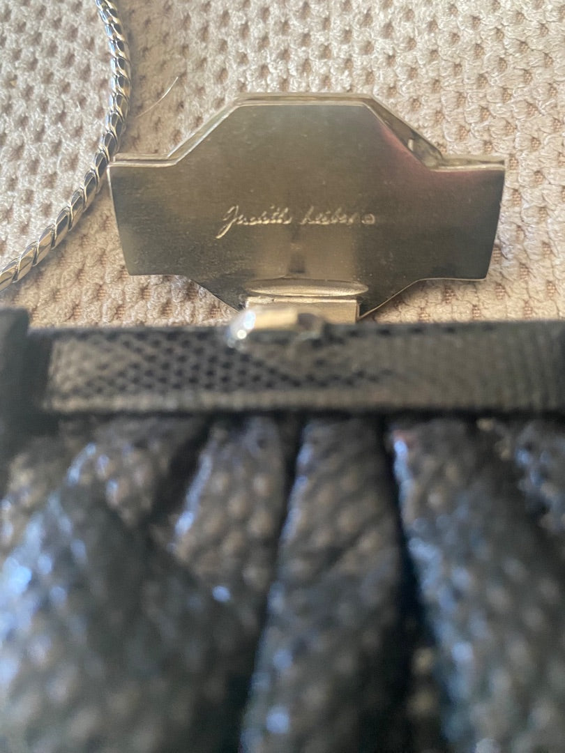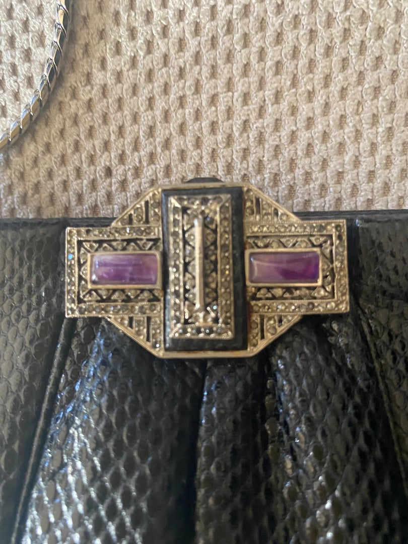 Judith Leiber Black Snakeskin Clutch w|Art Deco Crystal Clasp