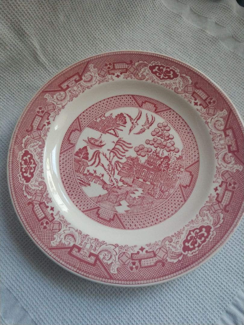 Set of 3 Willow Ware China Plates Red Transfer Ware 10"