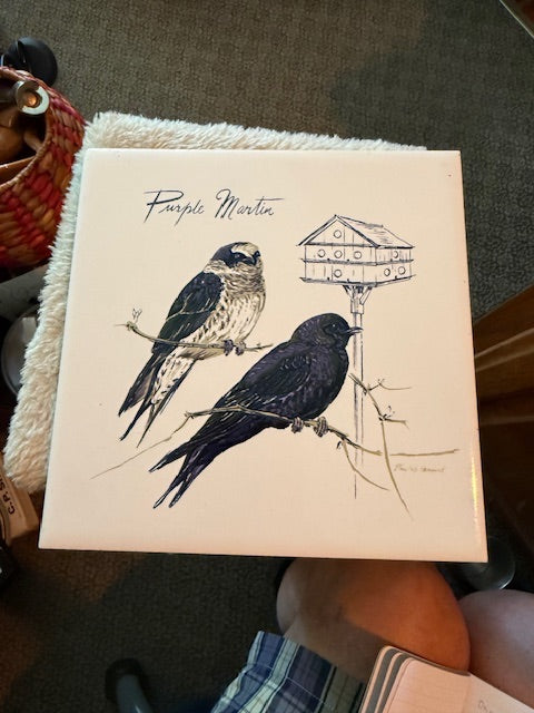 Vintage Ceramic Tile Trivet Purple Martin