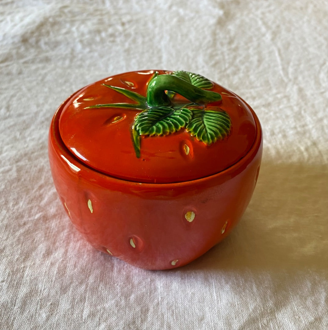 • Vintage Occupied Japan ceramic strawberry jam pot with lid