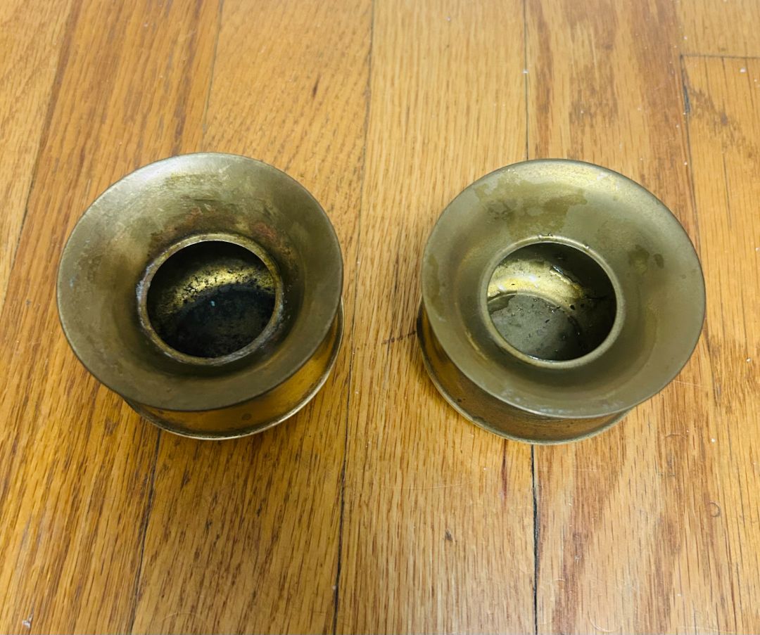 • Petite Vintage Brass Planter Cupsidor (set of 2). Wear consistent with age.