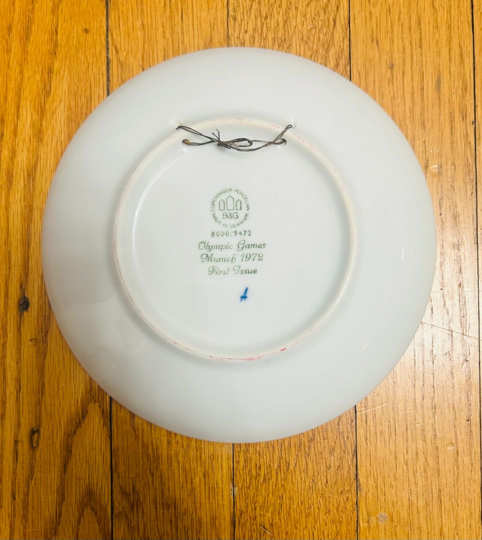 1972 Royal Copenhagen Olympic Plate - first edition feautres olympic torch from Munich games