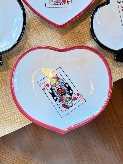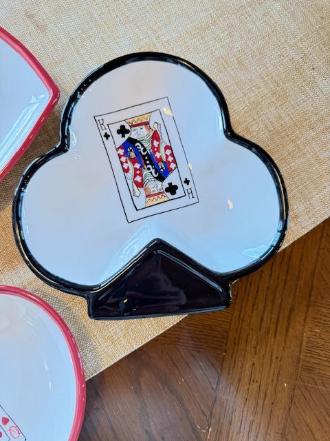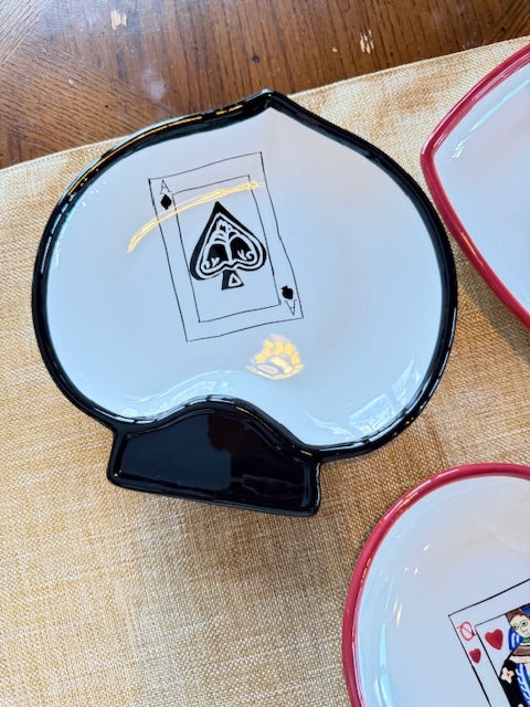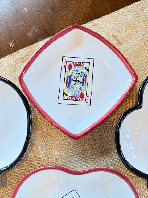 Each plate is shaped like a suite from a deck of cards - hearts, spades, clubs and diamonds.