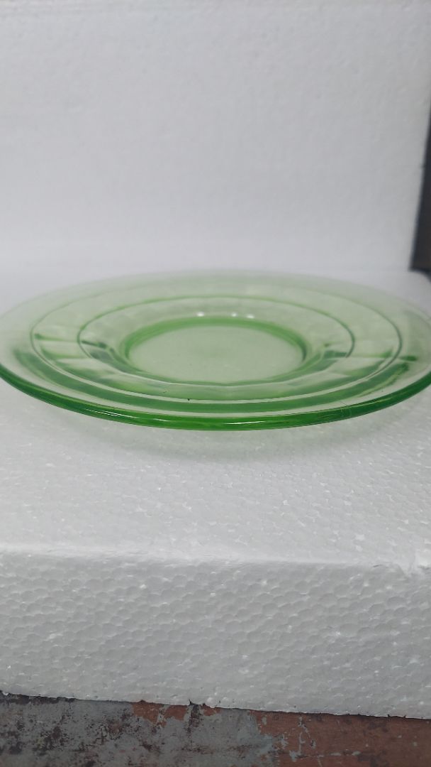 Uranium Glass - 1929-33 - bread and butter Plate, Block Optic Green by Hazel-Atlas (As-Is)