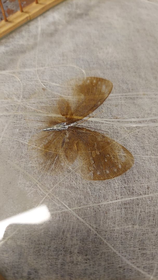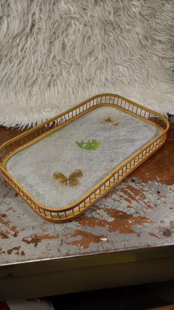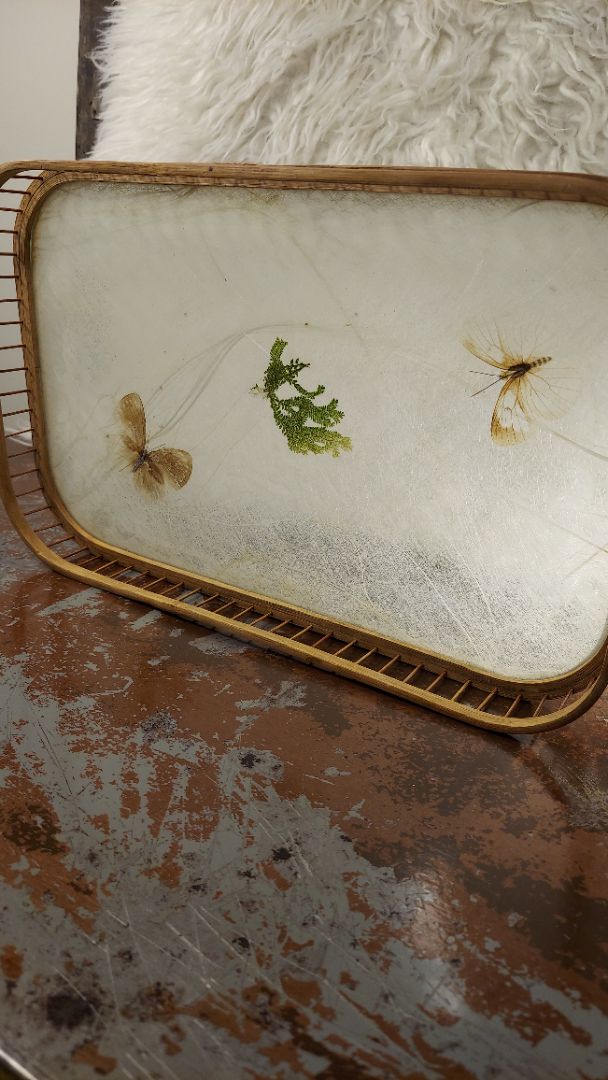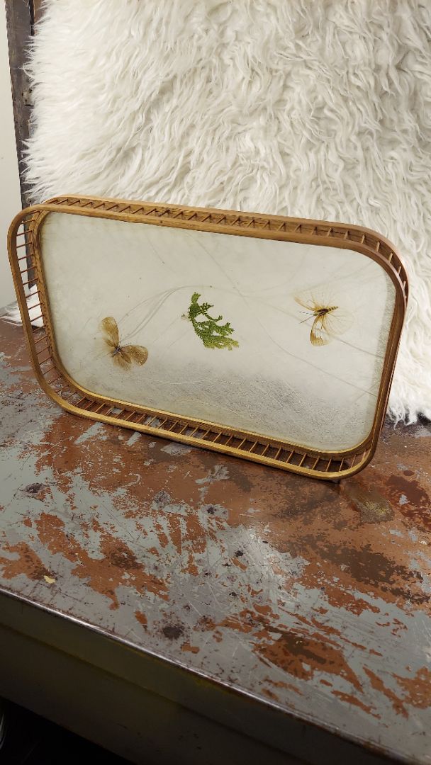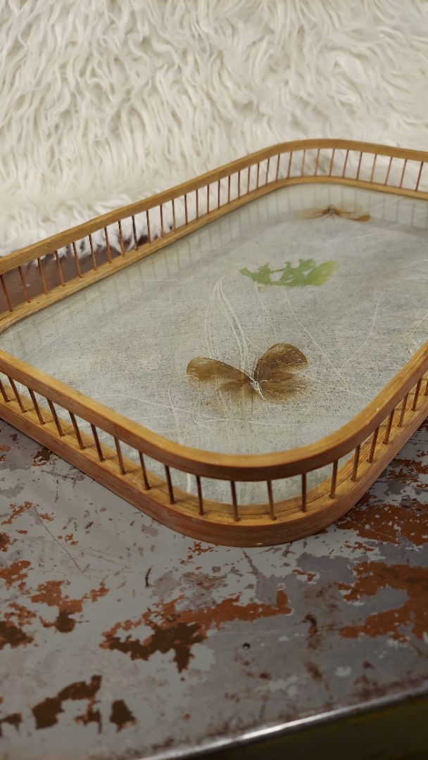 • Absolutely gorgeous serving tray with two real butterfly wings and fern plant pressed between.