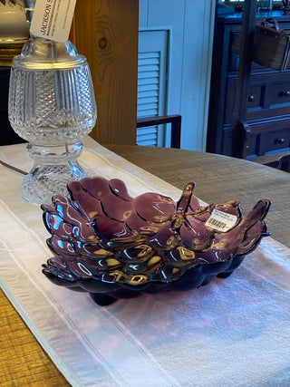 1960s Iridescent, Blue & White Ceramic Hibiscus Flowers by Holland Mold - tidbit serving dish (T&M)