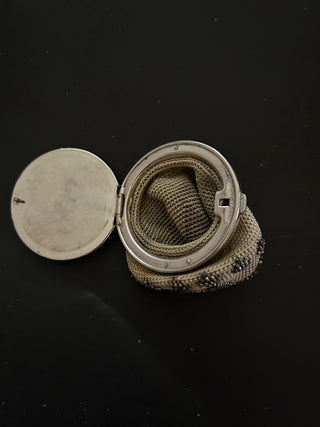 Silver purse w/faux pearl handle plus gold chain and silver strap included