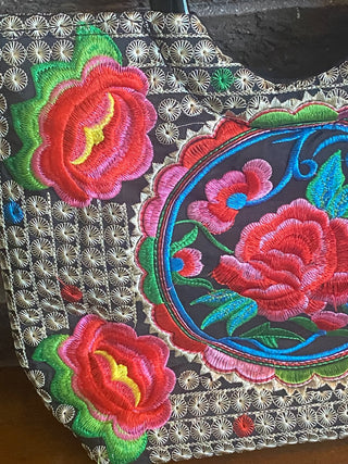Vintage travel bag tote with recycled GM seatbelt and buckle adjustable crossbody shoulder strap (As-Is) one of a kind