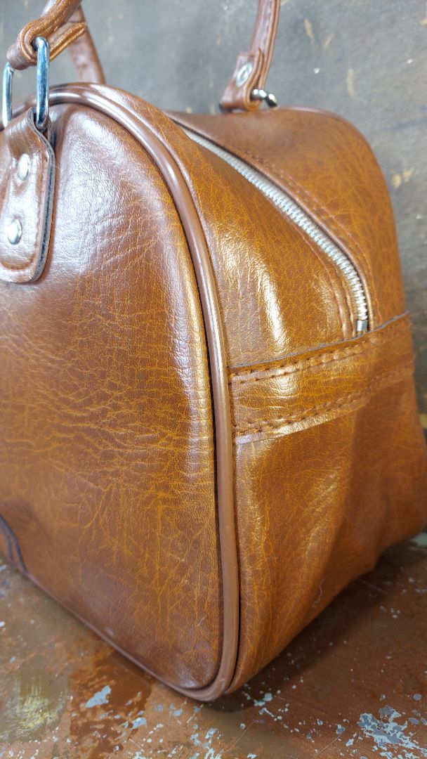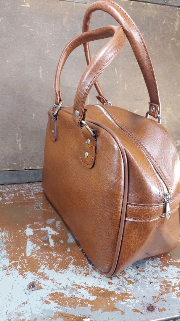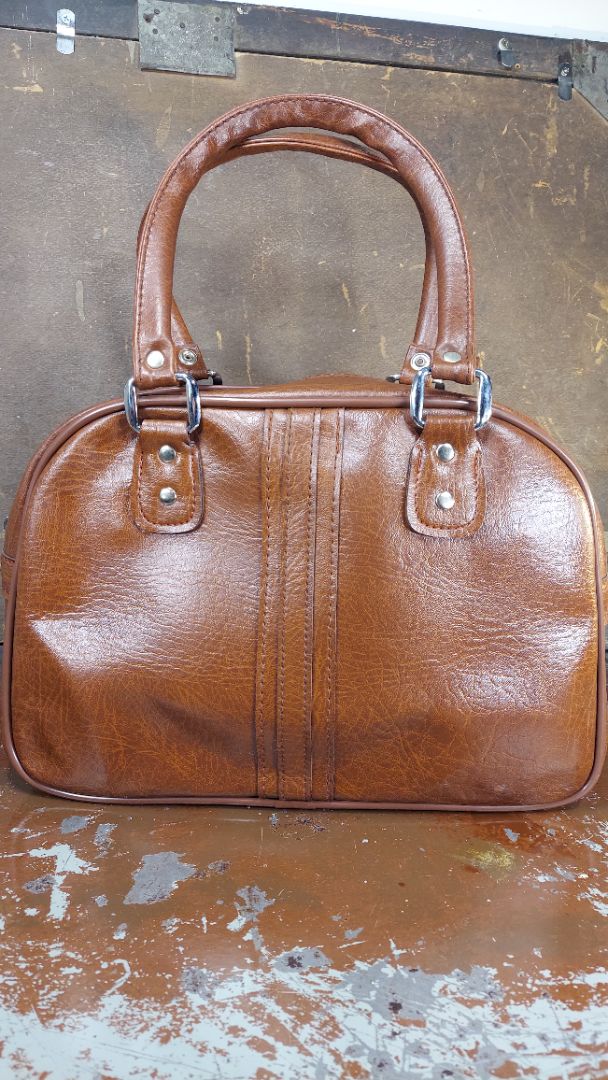 Never Used - 1950s Tote Carry-on Bag, Brown Vinyl made in Taiwan R.O.C.