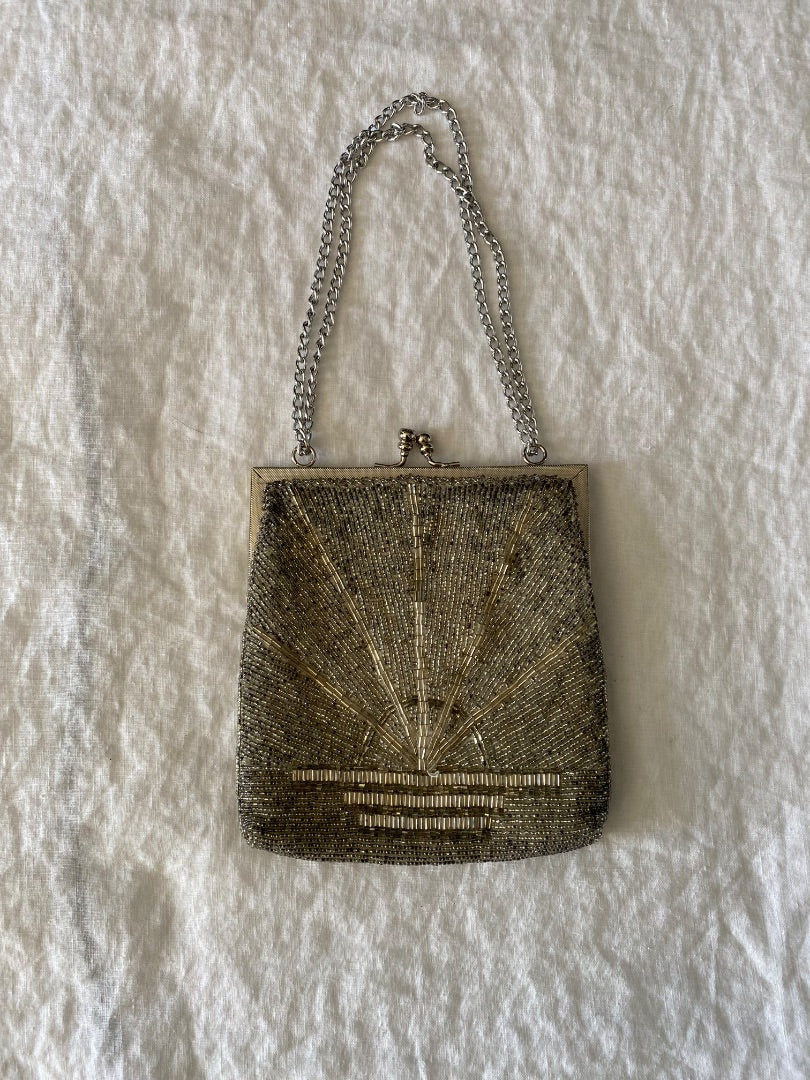 Vintage beaded handbag with metal chain straps