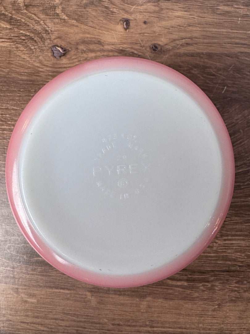 Rare Vintage Pyrex pink Gooseberry Casserole 1 qt - Low price due to small sanded chip on rim.
