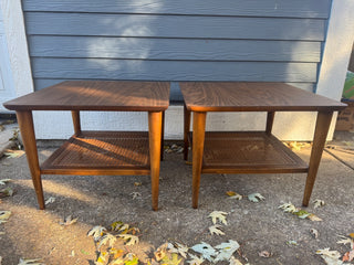 Mcm,Lane Walnut & Cane Formica side tables ( sold as set of 2)