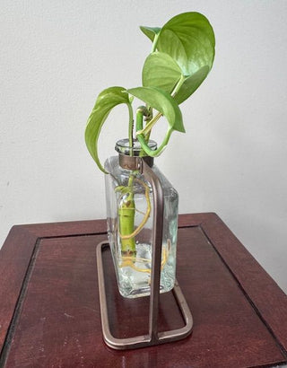 Vintage Look Square Metal/Glass Propagation Vase