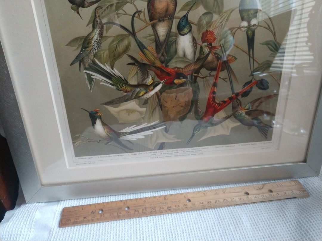 Framed page from an encyclopedia ... see fold in center. corca 1905 Germany - original Lithograph. Hummingbirds