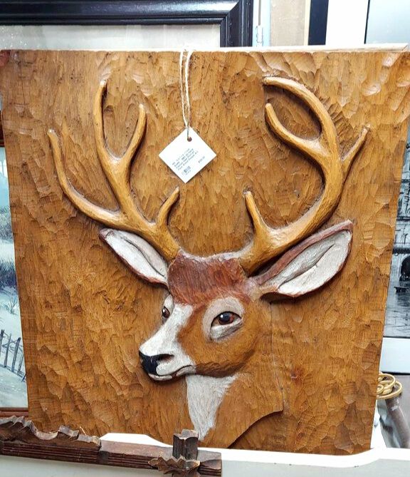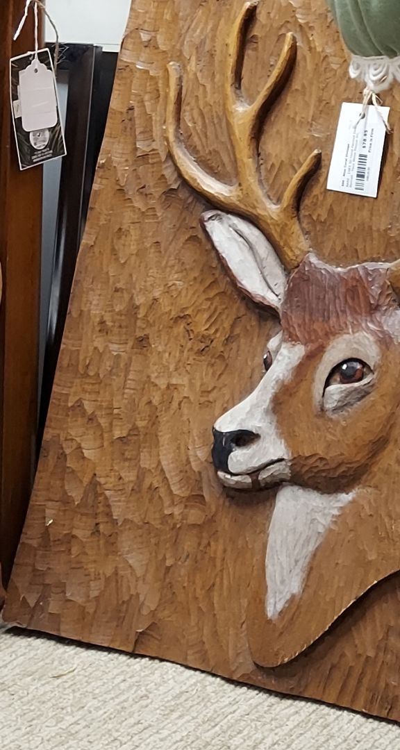 1983 Stag Deer Profile - 3D Primitive Folk Art style carved faux wooden plaque wall hanging