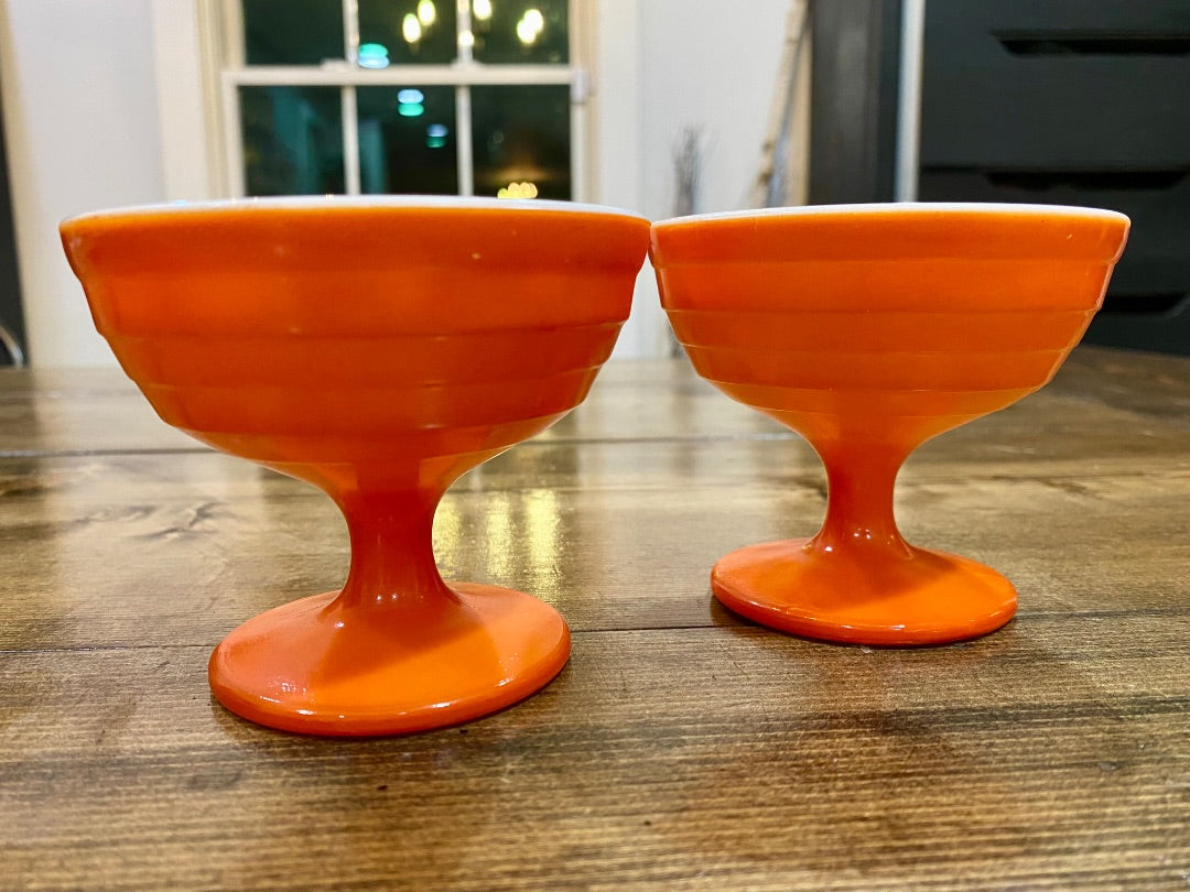 2pc Moderntone Platonite Orange by Hazel-Atlas Sherbet Cups