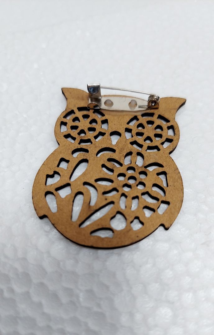 a) Wooden Owl Accessory - Bar Pin Brooch 1 ¾”