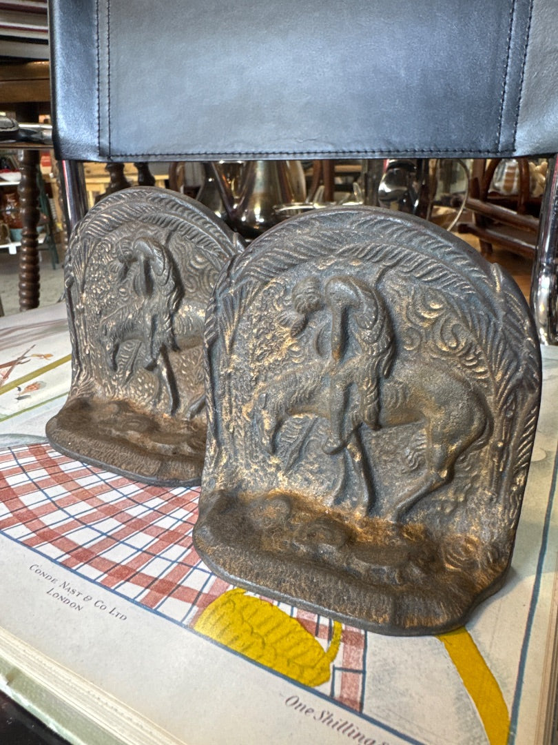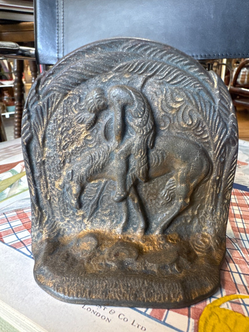 • Antiqu,Cast iron Indian on Horse bookend ,,Trails End of the trail ,,