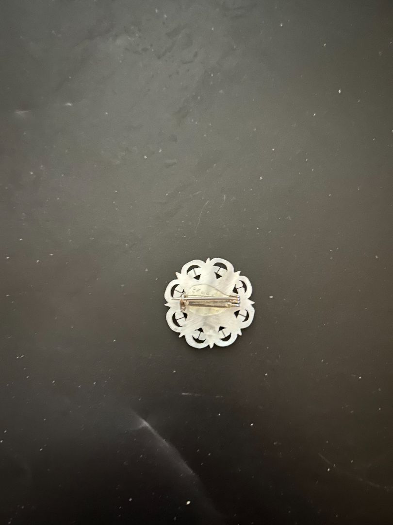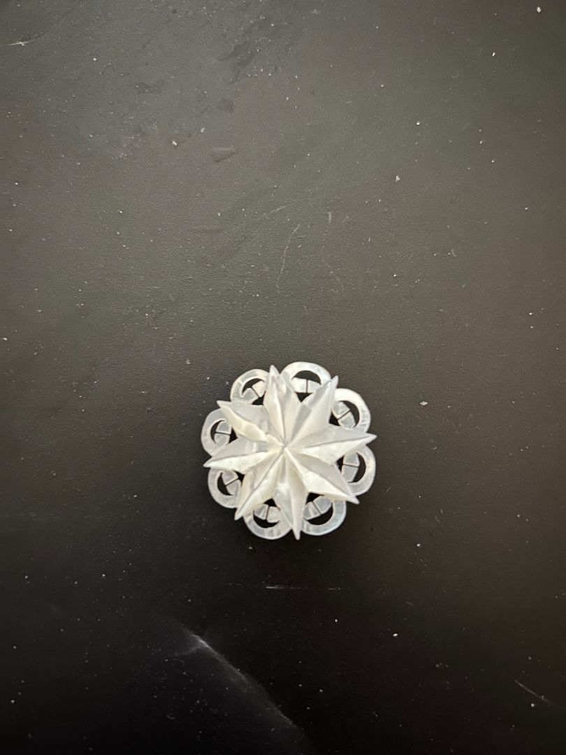 Mother of Pearl Carved Snowflake Pin. Popular in 19th Century. Associated with Star of Bethlehem.