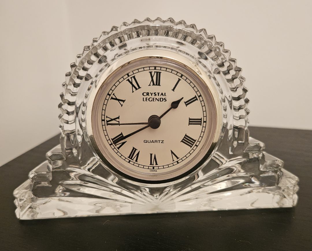 Crystal Legends mantel clock by Godinger. Art Deco style.