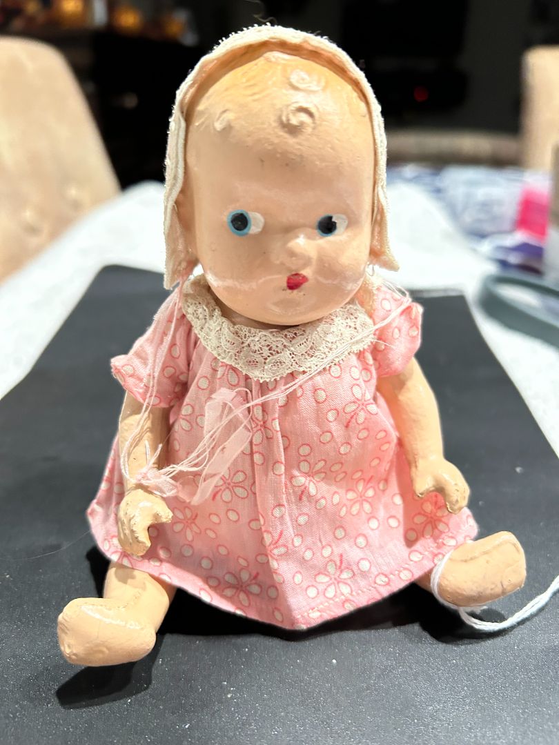 • Vintage Baby Doll. Made in Mix Media Ca. 1930's-1940's. "Made in Occupied Japan" printed on leg.
