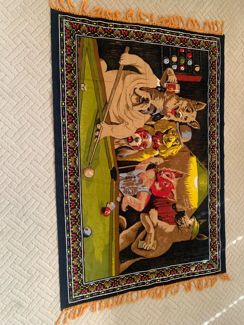 39"x58" Fringe Sanayi 100% Cotton, Dogs Playing Billiards, Made in Turkey (NOT IN STORE)