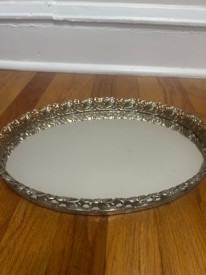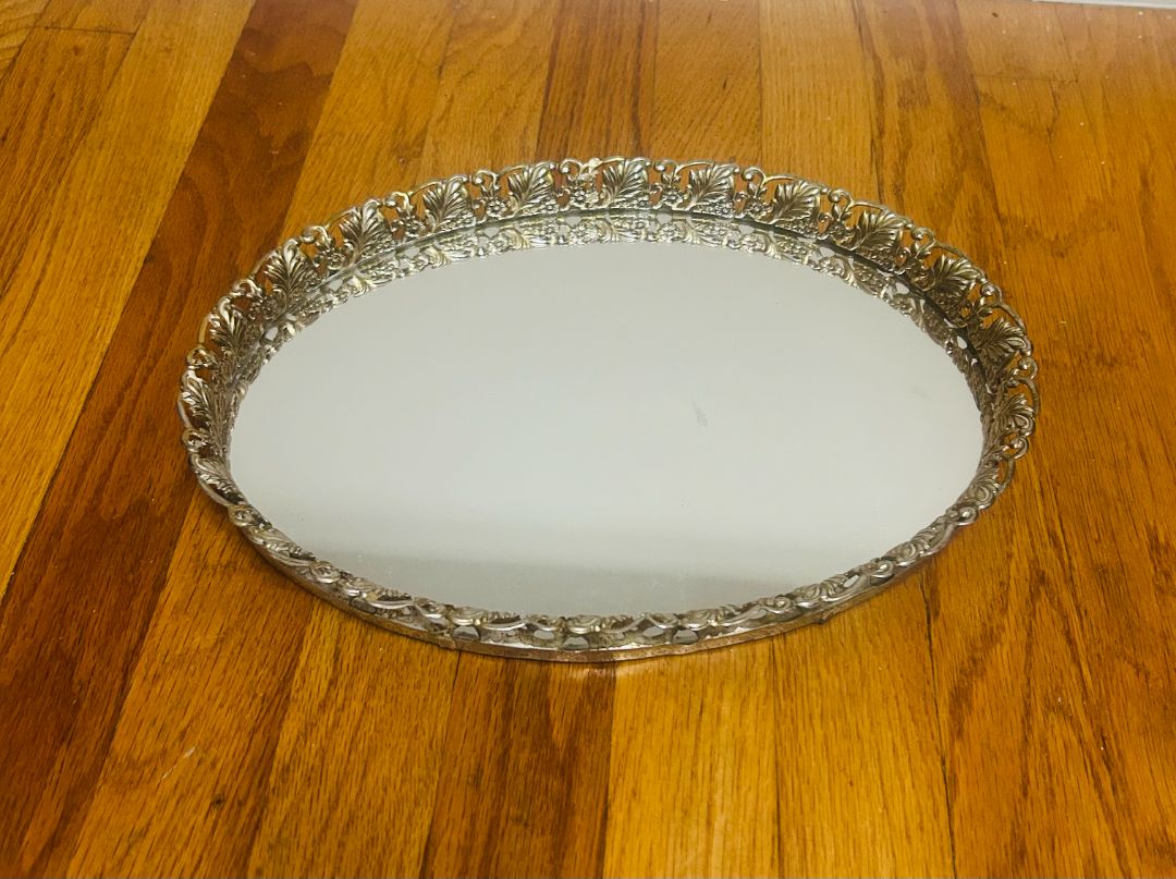 • Gilded Oval Mirrored Tray