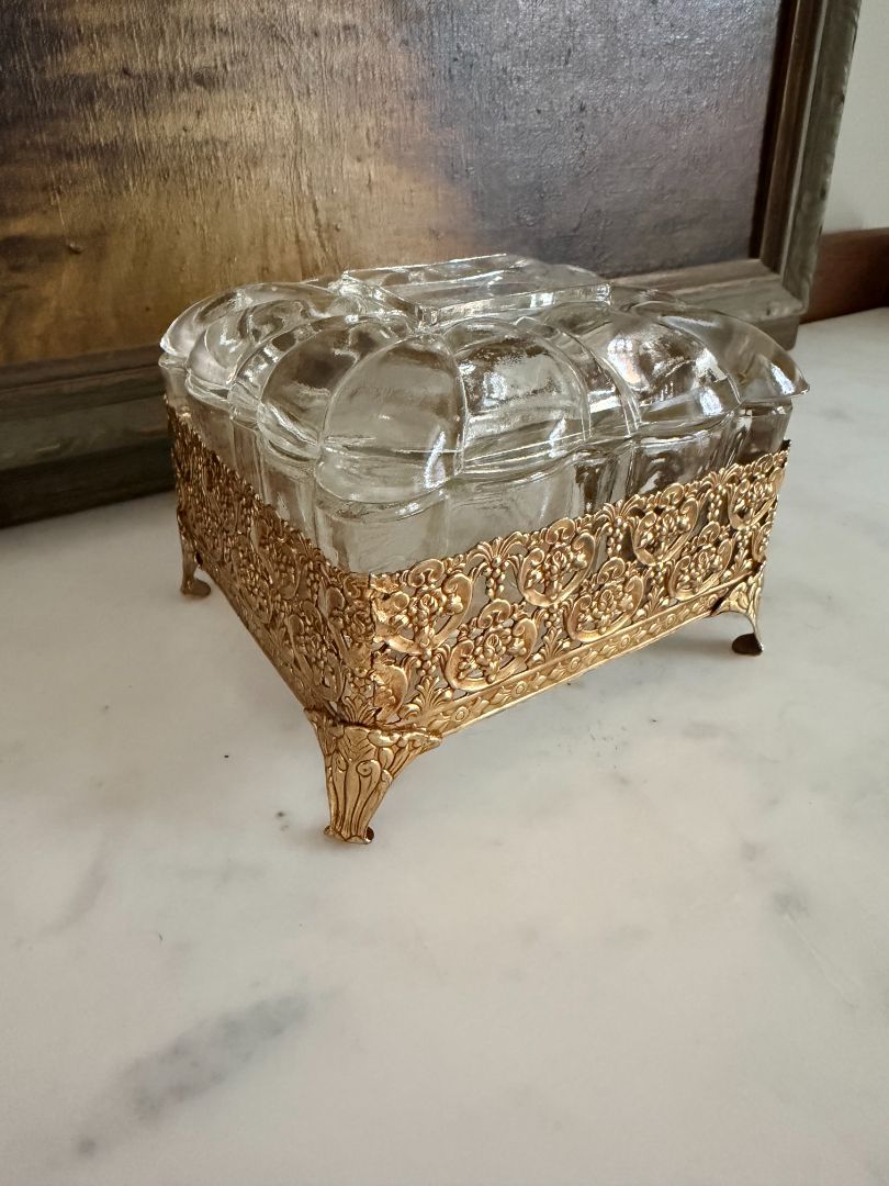 Gold Filigree Trinket Box w/ Bubble Glass Lid