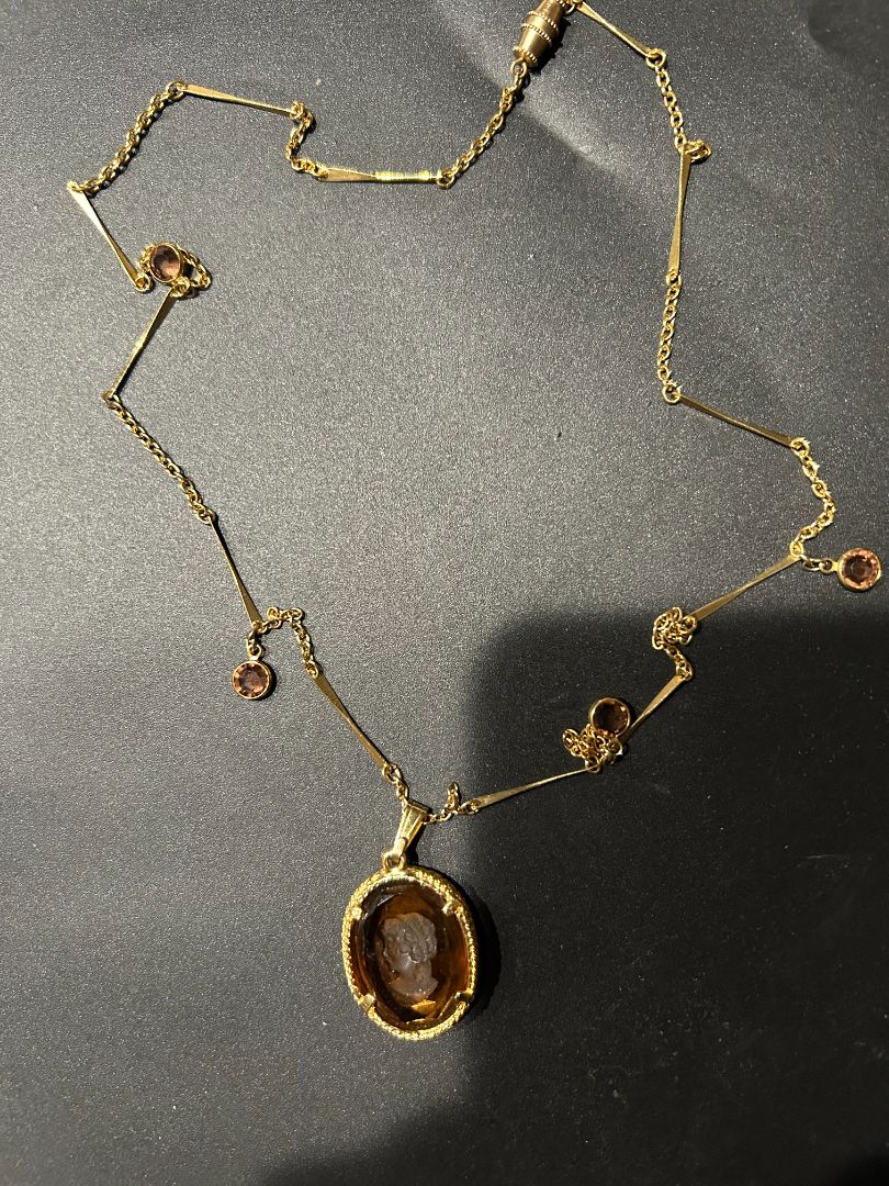 • Vintage Goldtone Setting & Chain w/Stones. Chain is 22.5"