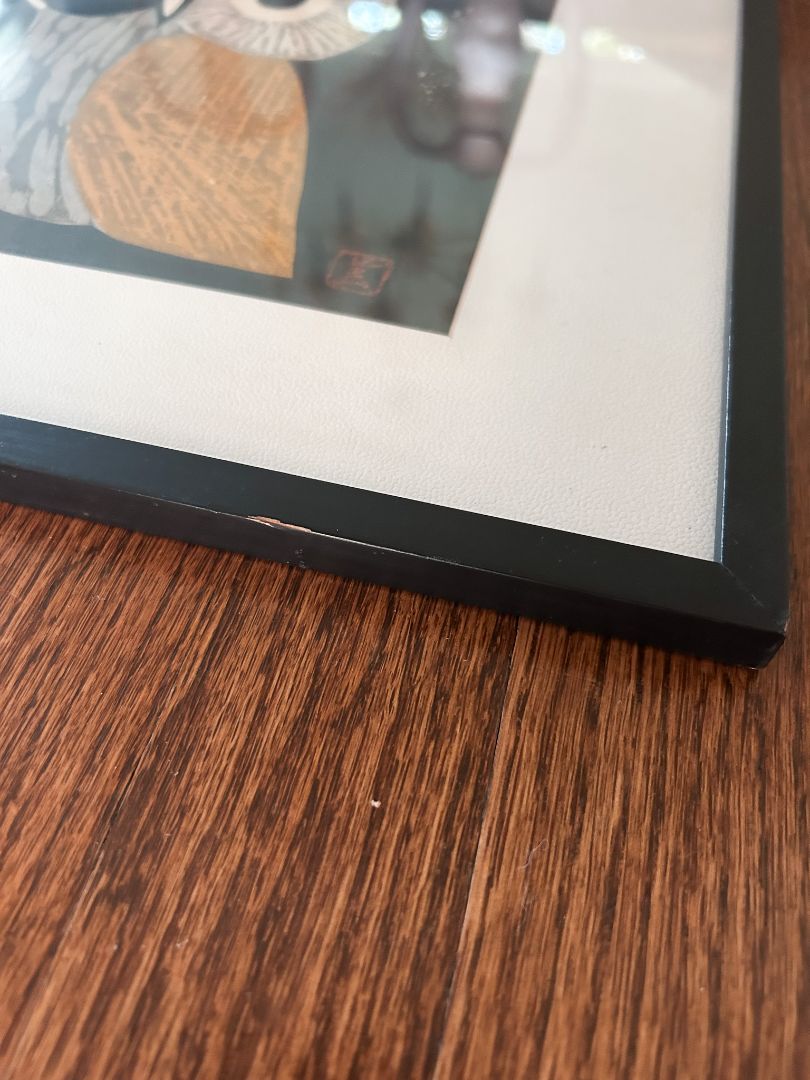 Kaoru Kawano "Three Eyes" Owls Woodblock Print w/ Seal