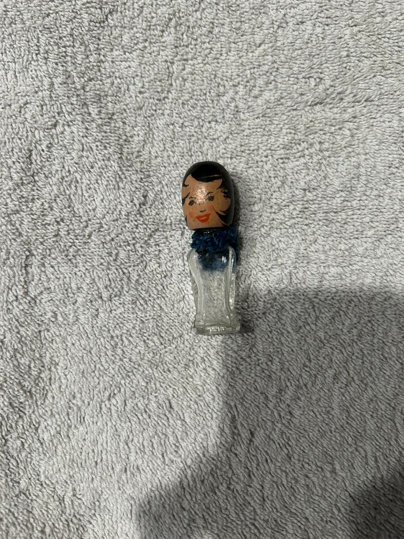 • Antique Karoff Perfume Bottle with Hand Painted Wooden Stopper. Popular in the 1930's