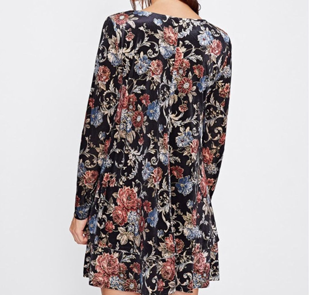 (L) Floral Print Velvet double skirt swing Dress