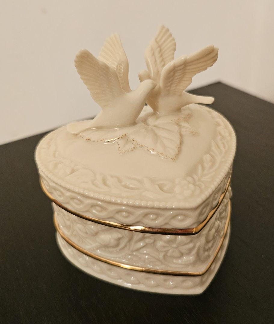 Lenox Heart-Shaped Porcelain Box with Doves & 24 Karat Gold Trim