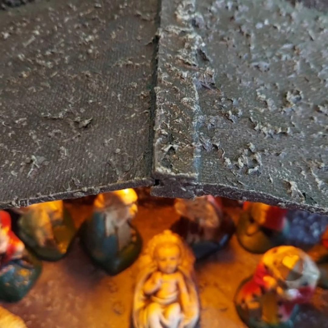 Vintage 15pc Nativity Scene 4.75" scale Papermâché paper mache composite figurines with large lit wooden stable from Germany