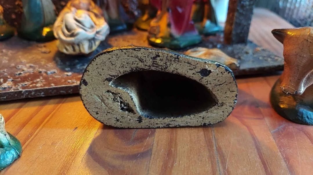 Numerous components contribute to a natural and lifelike aura of these handmade pieces. They have wear, they are old! As-Is