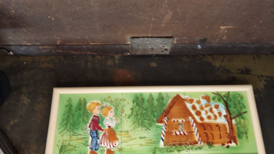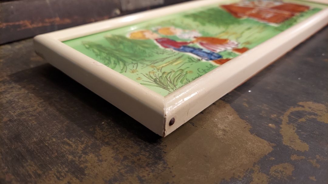 Midcentury "Hansel and Gretel" fairy tail hand-painted tile wall art, signed "Anderson" (As-Is)