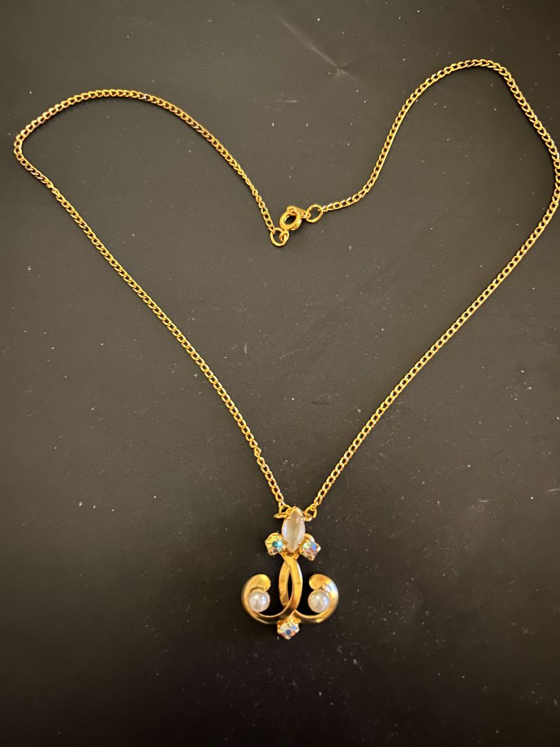 Goldtone Necklace with Freshwater Pearls & Charm. Goldtone 17" Chain