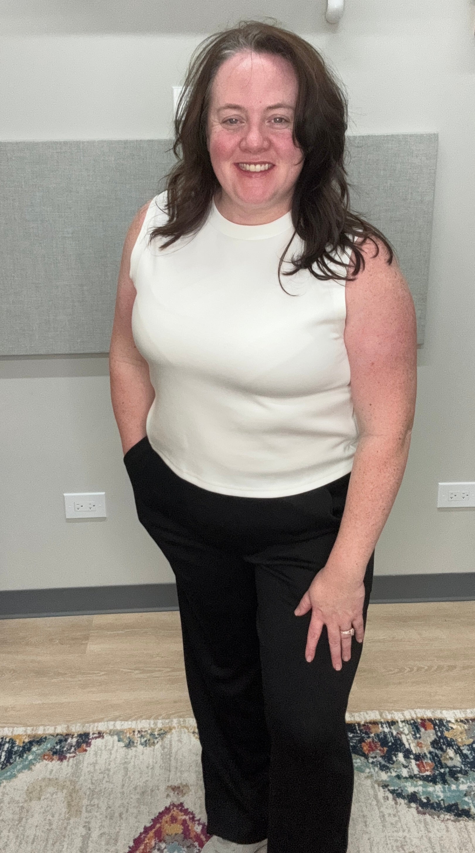 Wear it tucked into denim, paired with the matching wide leg pants, layered under a blazer for the office, or styled with joggers for an easy off-duty look. It’s polished comfort at its best.
