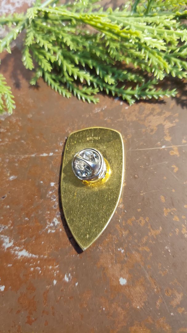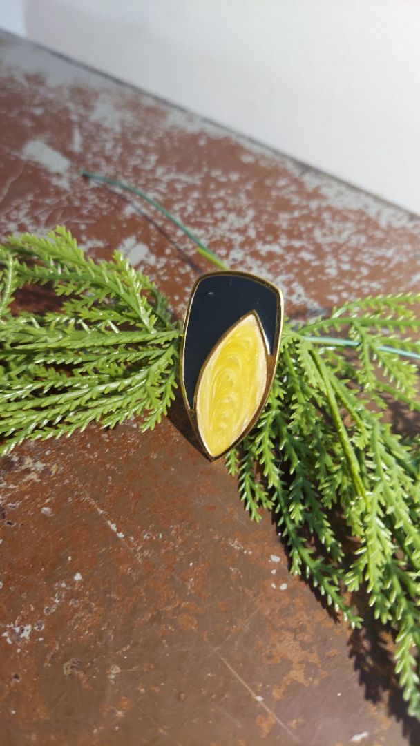 Push pin - 1980s Monet Gold Tone with enamel black and gold swirl detail - Upcycled Vintage Jewelry, Custom Piece