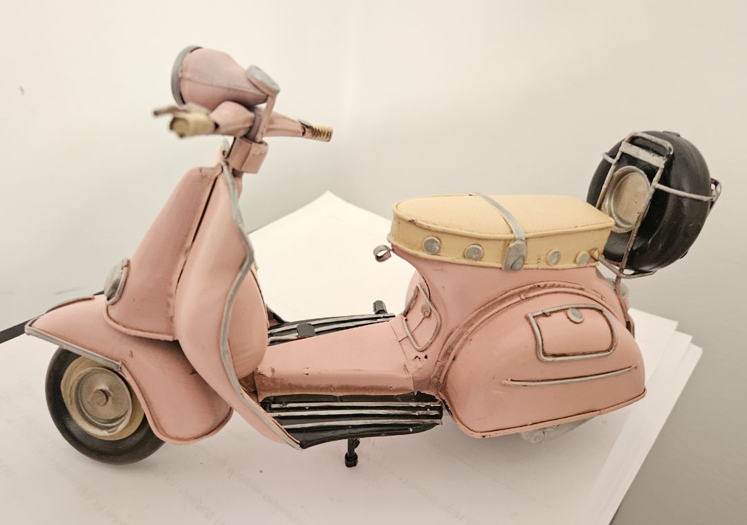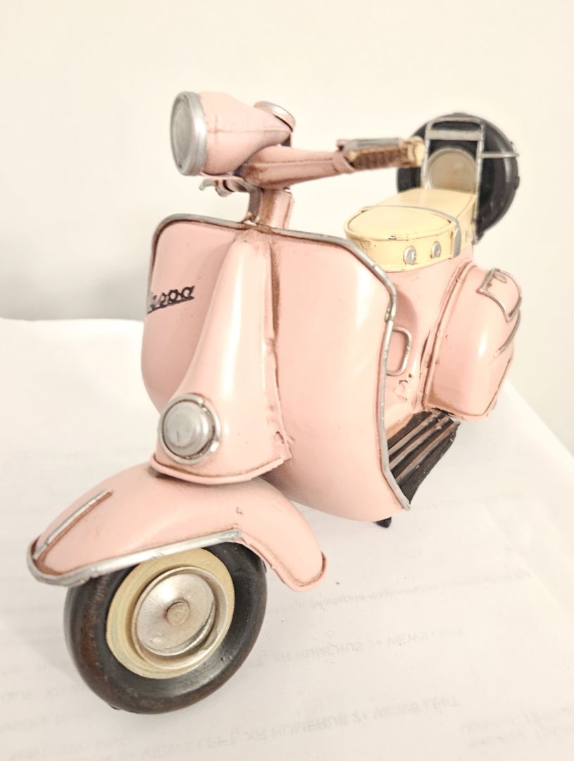 Charming metal model of Vespa Scooter. Complete with spare tire on the back.