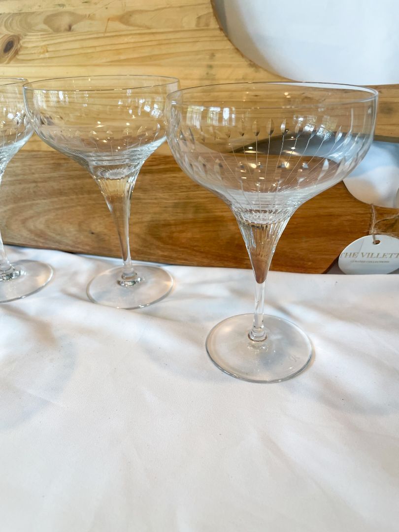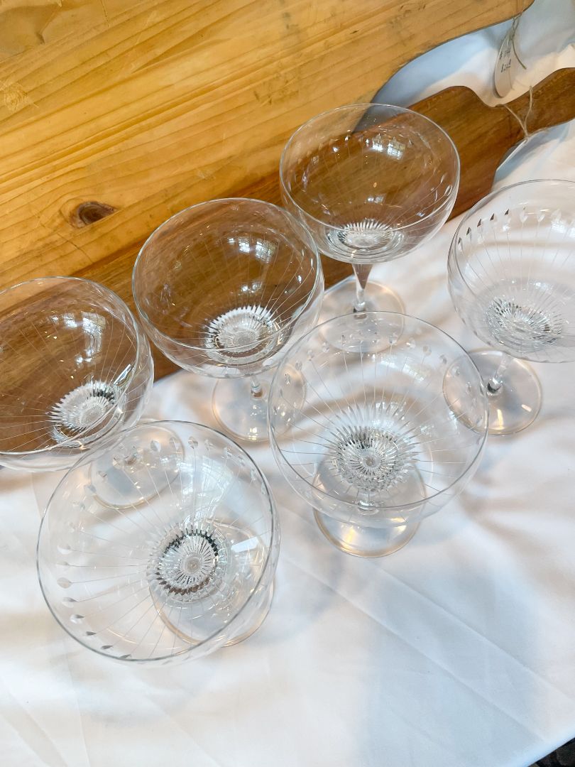 1960s Rosenthal Lotus Cut Champagne Coupes or Cocktail Glasses - Set of 12