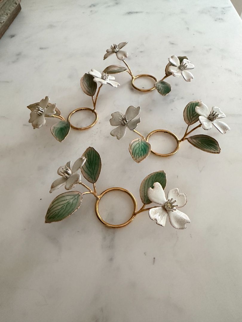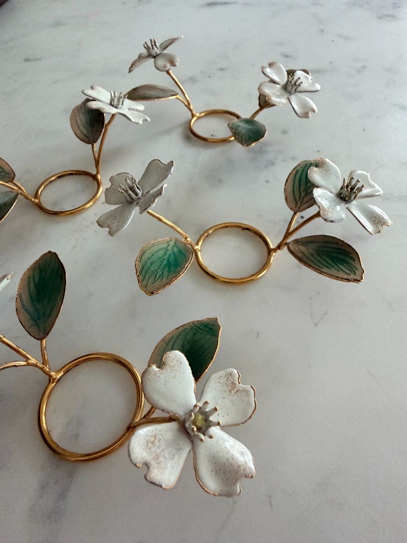 Set of 4 Enamel Dogwood Flower Taper Candle Rings
