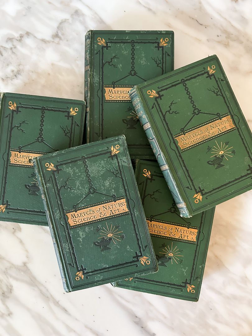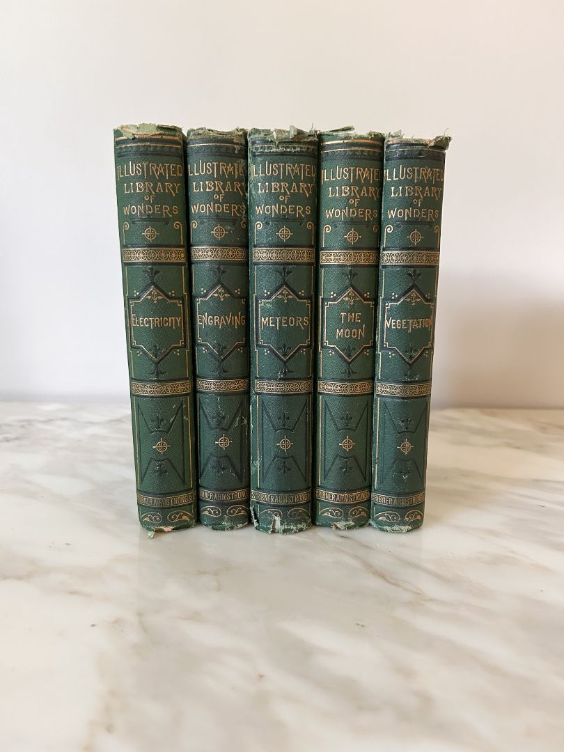 Set of 5 "Illustrated Library of Wonders" Antique Hardcover Books